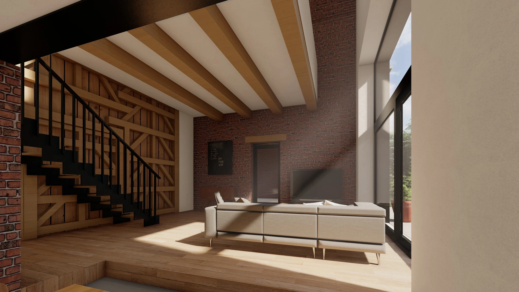 L'extérieur est caractérisé la simplicité de sa composition: deux baies verticales accompagnent une large baie existante , apportant ainsi un bel éclairage naturel aux espaces de vie.